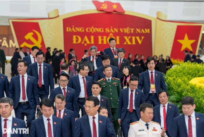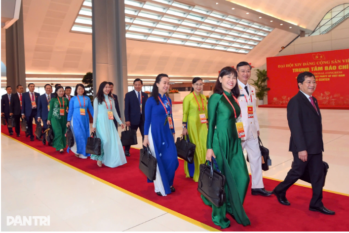 Các đại biểu tới Trung tâm Hội nghị Quốc gia dự phiên khai mạc Đại hội XIV của Đảng.