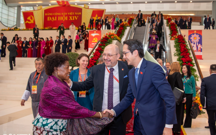 Các khách mời quốc tế đến tham dự phiên khai mạc Đại hội XIV của Đảng.