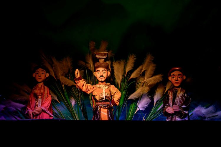Cảnh trong vở diễn “Hoàng đế cờ lau” của Nhà hát Múa rối Thăng Long.