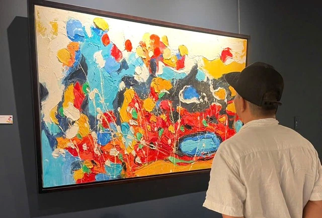 Với những cái tát cọ mạnh mẽ, những nhát bay dao trét sơn dày nổi và những cú vẫy màu đầy ngẫu nhiên, Vĩnh dẫn người xem đi từ bất ngờ đến... sửng sốt. Dưới sự sáng tạo của anh, màu sắc không chịu nằm yên mà bật tung, va đập, tạo thành một trường diễn cảm xúc.