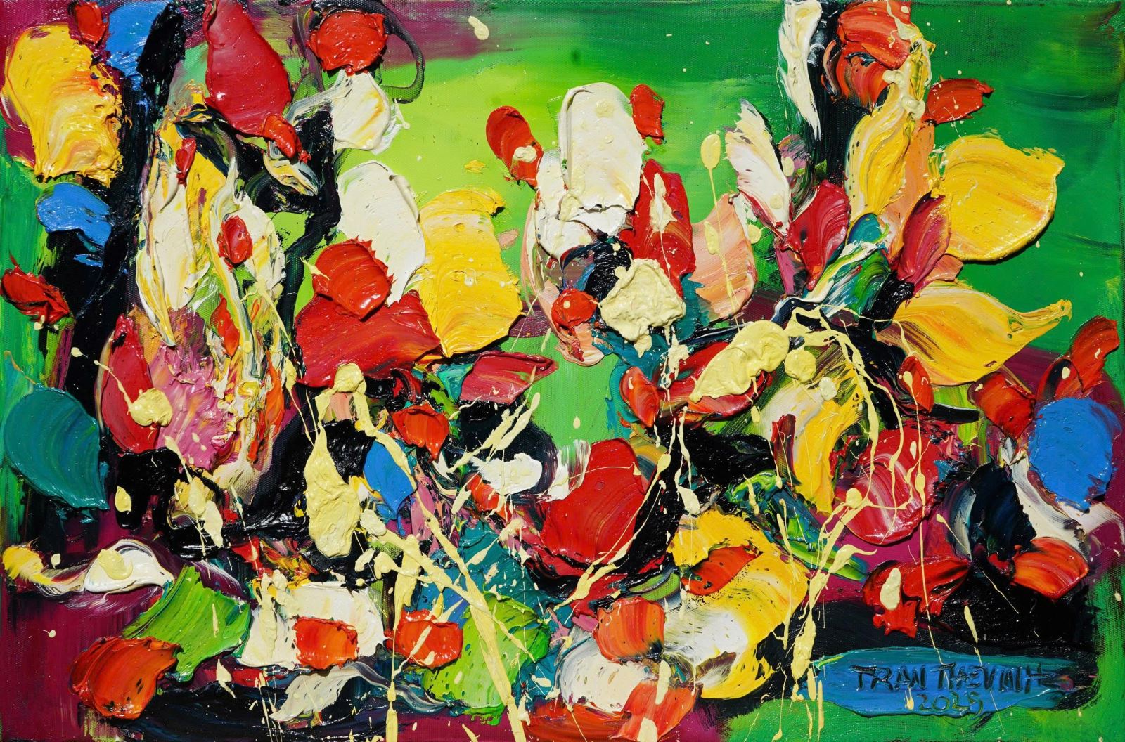 Họa sĩ Trần Thế Vĩnh đánh dấu sự trở lại ấn tượng của mình bằng triển lãm Vũ điệu ngàn hoa vừa khai mạc tại Maii Gallery Art Space (P.Xuân Hòa, TP.HCM), diễn ra đến ngày 27.10.