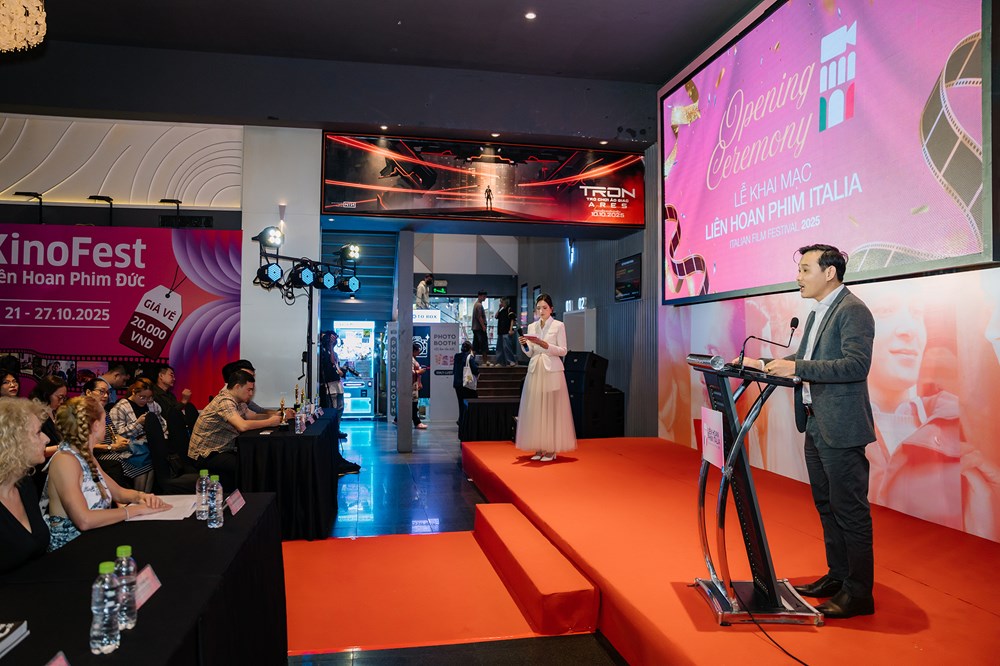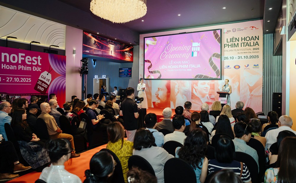 Lễ khai mạc diễn ra tối 26.10 có sự tham dự của ông Phạm Quý Trọng - Phó Vụ trưởng, Vụ Địa Phương 3, Ban Tuyên giáo và Dân Vận Trung ương; bà Alessandra Tognonato, Tổng Lãnh sự quán Italia tai TP.HCM; ông Antonio Termenini, Giám đốc Liên hoan phim châu Á tại Rome, đồng thời là Giám đốc nghệ thuật của Liên hoan phim Italia 2025.