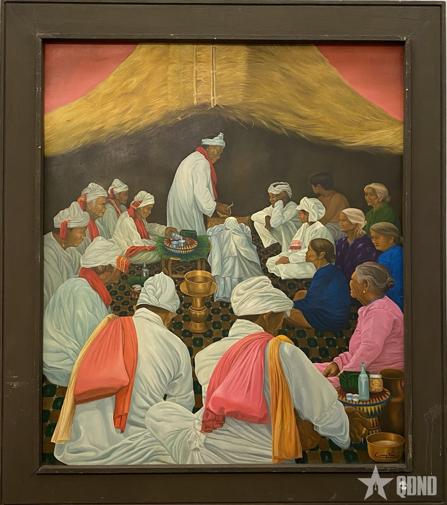 Nổi bật trong 30 tác phẩm mới được trưng bày tại bảo tàng (nằm trong đợt tiếp nhận 979 tác phẩm nghệ thuật do Hội Mỹ thuật Việt Nam chuyển giao mới đây), là hai bức tranh Đám tang người Chăm – Balamon và Hội thi xay ngô ở Hà Giang – hai lát cắt của đời sống văn hóa cộng đồng các dân tộc Việt Nam.