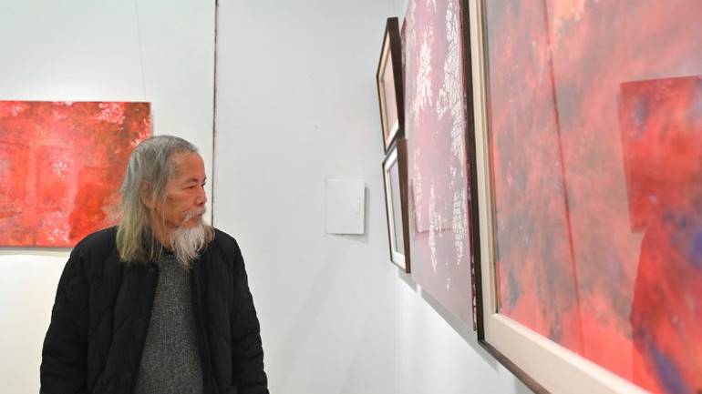 Họa sĩ Lương Xuân Đoàn, Chủ tịch Hội Mỹ thuật Việt Nam tham quan triển lãm.
