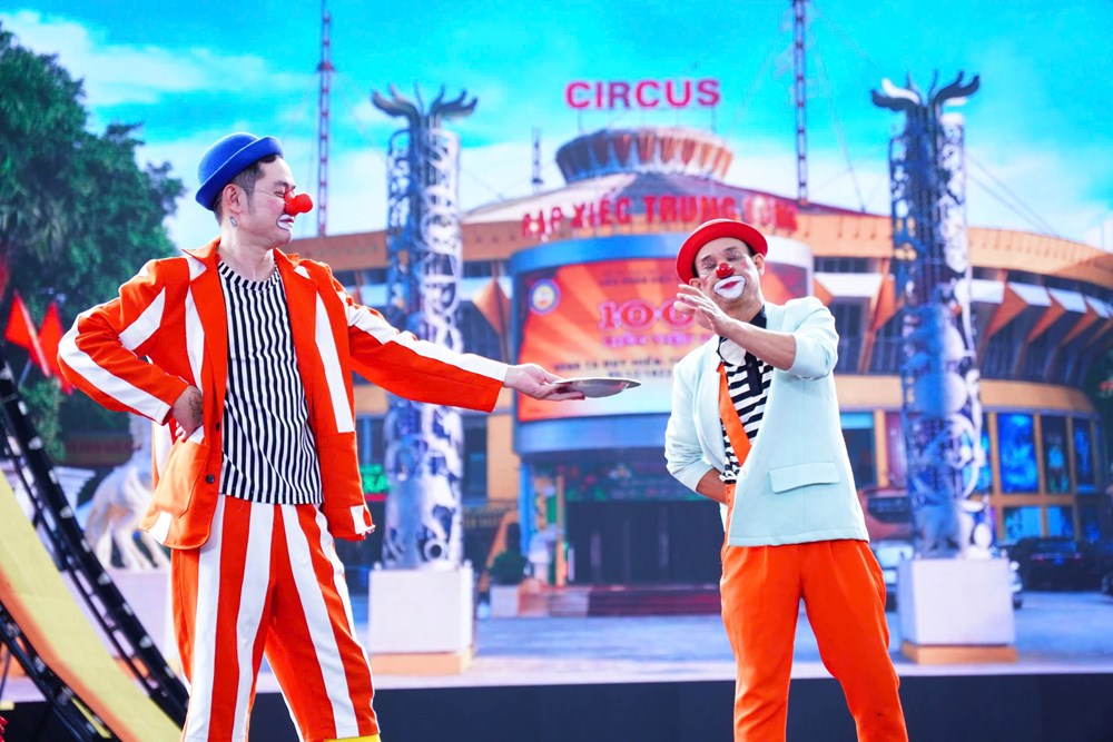 Tiết mục của tốp hề mang đến nhiều tiếng cười sảng khoái, tạo không khí vui tươi, gần gũi