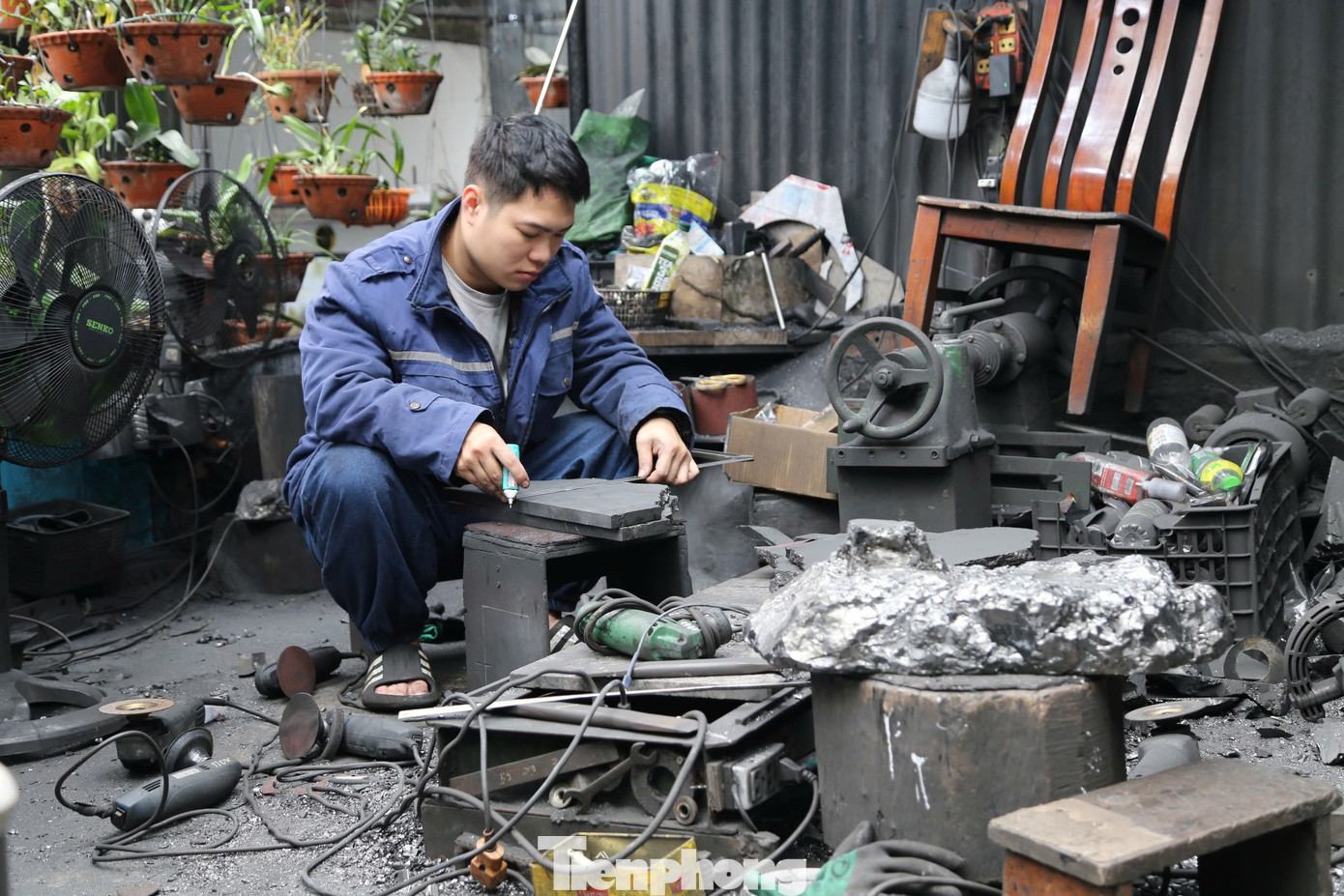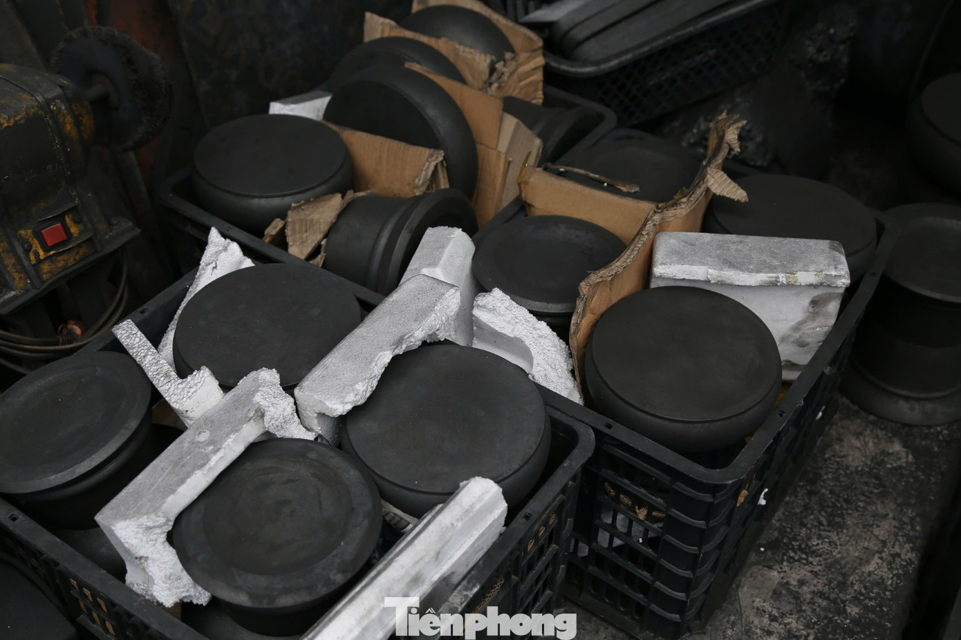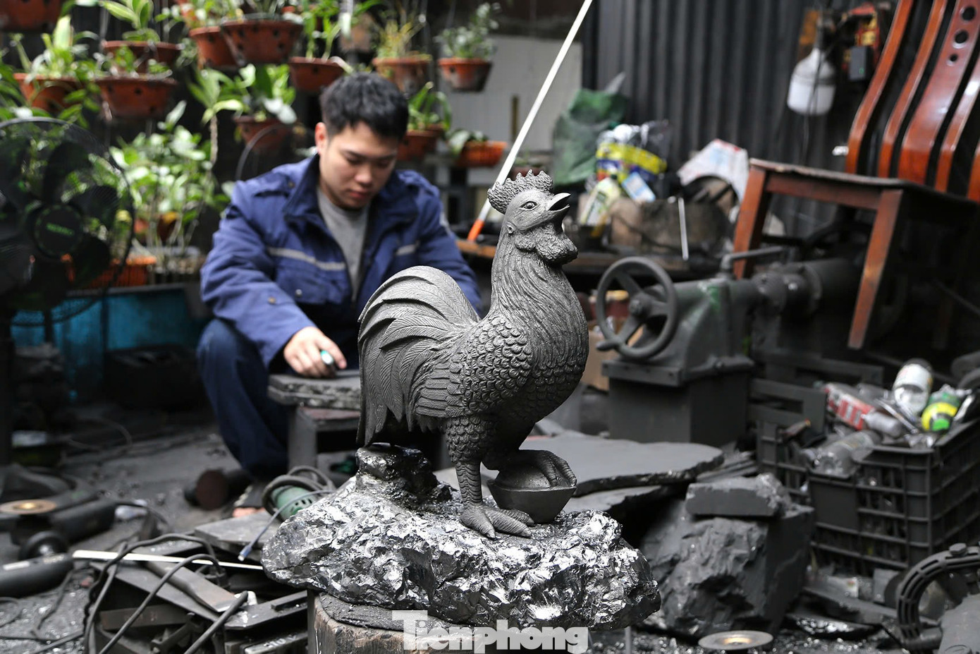 Trong không gian phủ một lớp bụi đen quen thuộc, thợ trong xưởng miệt mài hoàn thiện các tác phẩm linh vật phục vụ thị trường đầu năm.