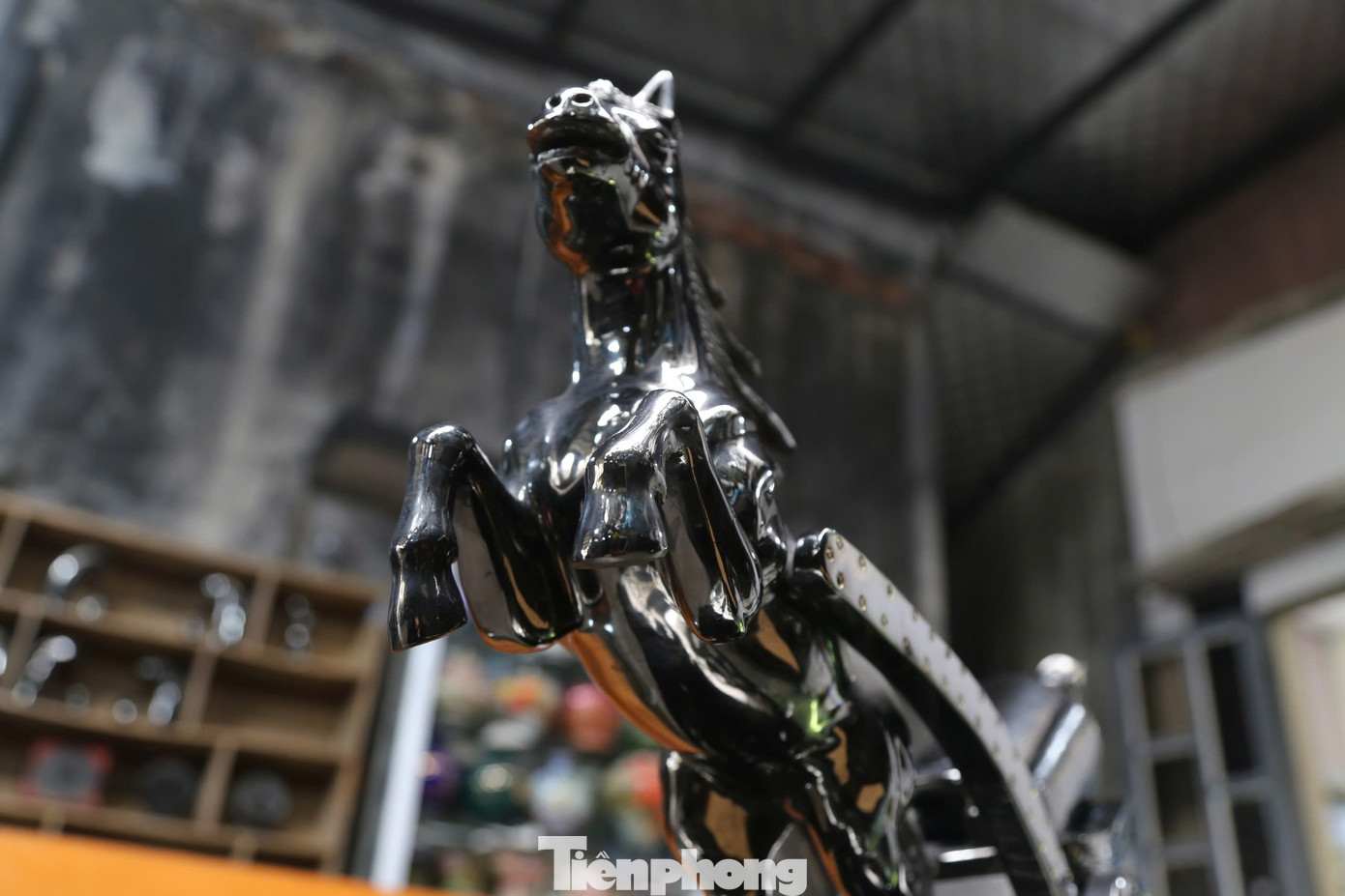 Điểm nhấn của “Chiến mã” nằm ở độ tương phản bề mặt, phần thân được đánh bóng kỹ, bờm và đuôi để thô vừa đủ nhằm tạo nhịp điệu thị giác, làm rõ chất “mỏ” của vật liệu.