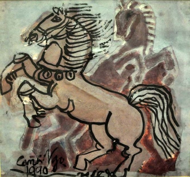 Một bức tranh ngựa của Nguyễn Tư Nghiêm năm 1990.