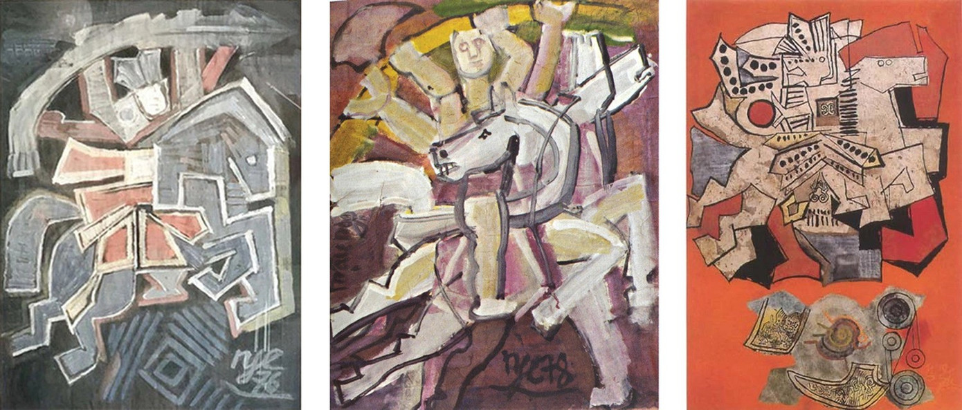 Một số tác phẩm trong loạt tranh chủ đề Gióng của họa sĩ Nguyễn Tư Nghiêm sáng tác các năm 1976, 1978, 1982.