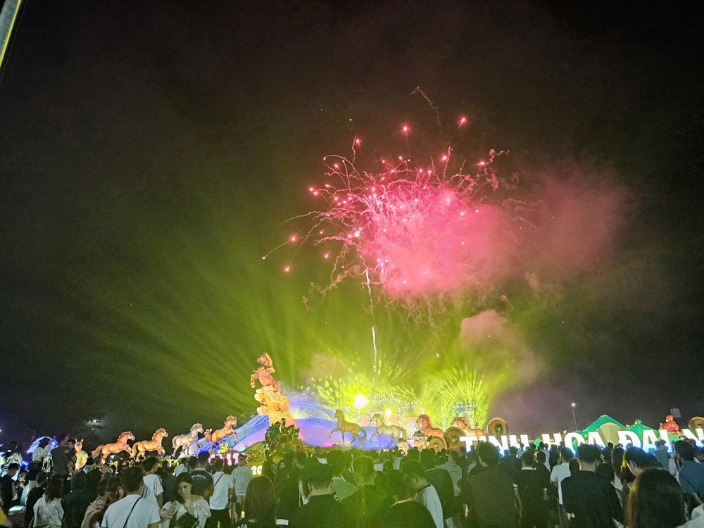 Ngay sau chương trình nghệ thuật, màn bắn pháo hoa tầm thấp đã thu hút ngàn hàng người dân và du khách háo hức chờ đón, mang đến khoảnh khắc chào năm mới rực rỡ.