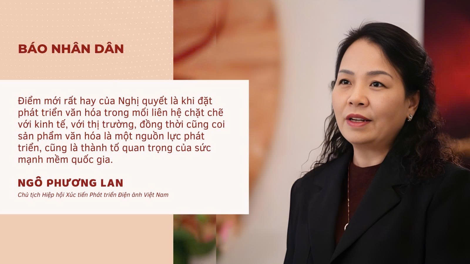 Tiến sĩ Ngô Phương Lan: Một điểm mới mà tôi rất tâm đắc ở Nghị quyết 80, liên quan đến công việc của tôi là cách tiếp cận rất toàn diện và hiện đại trong việc phát triển văn hóa. Thí dụ như lần đầu tiên văn hóa được đặt trong mối quan hệ rất chặt chẽ với kinh tế và với thị trường. Bởi vì khi nói đến các ngành công nghiệp văn hóa, trong đó có điện ảnh, phải nói đến thị trường. Nếu không có thị trường, không thể xây dựng được công nghiệp văn hóa. Anh có sản phẩm, phải đưa ra được thị trường, phải bán được và có nguồn thu để tái đầu tư, tái sản xuất, thành một môi trường khép kín.