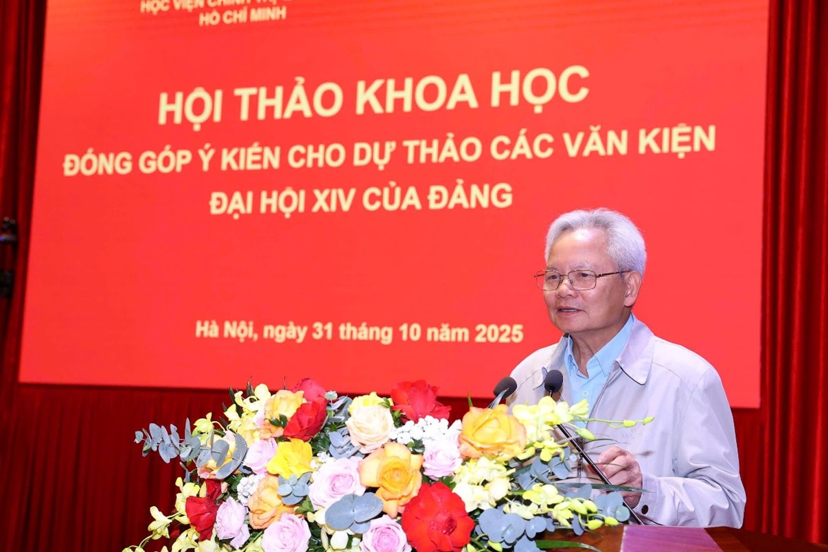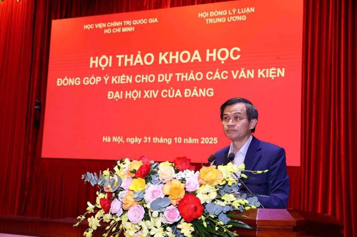 Phát biểu khai mạc, PGS. TS. Đoàn Minh Huấn, Uỷ viên Ban Chấp hành Trung ương Đảng, Phó Bí thư Thường trực Đảng uỷ Học viện, Phó Giám đốc Thường trực Học viện Chính trị quốc gia Hồ Chí Minh khẳng định, Đại hội XIV của Đảng là sự kiện chính trị trọng đại, đánh dấu một mốc son mới trong lịch sử vẻ vang của Đảng và của dân tộc ta. Các văn kiện dự thảo trình Đại hội không chỉ tổng kết hành trình 40 năm thực hiện đường lối Đổi mới mà còn vạch ra những định hướng chiến lược, những quyết sách lớn lao để đưa đất nước tiến tới mục tiêu dân giàu, nước mạnh, dân chủ, công bằng, phồn vinh, văn minh, hạnh phúc. Việc góp ý, bổ sung và hoàn thiện các văn kiện Đại hội đòi hỏi sự tham gia tích cực của toàn xã hội, trong đó đội ngũ các nhà khoa học – với sứ mệnh trí tuệ và trách nhiệm xã hội – giữ vai trò nòng cốt, tiên phong. Bằng những phân tích sâu sắc và đề xuất sáng tạo, dựa trên cơ sở lý luận và thực tiễn vững chắc, giới khoa học đã góp phần quan trọng vào việc nâng cao chất lượng, tính khoa học và tính khả thi của các văn kiện.