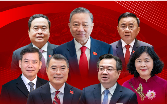 Tổng Bí thư Tô Lâm và một số lãnh đạo trong Bộ Chính trị khóa XIV (Ảnh đồ họa: Tuấn Huy).