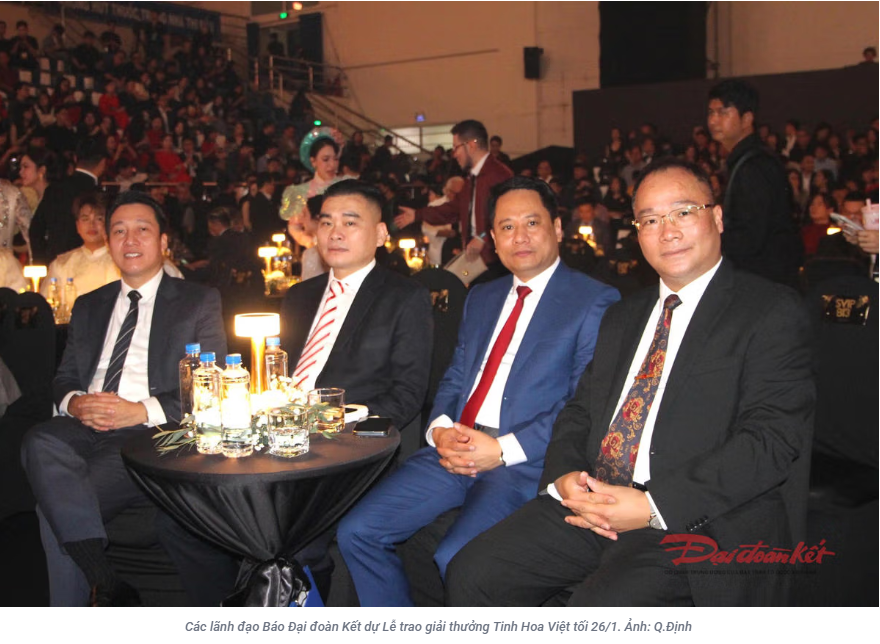 Về phía Báo Đại đoàn kết và Ban tổ chức giải thưởng đến dự đêm gala, có nhà báo Trương Thành Trung, Ủy viên Ủy ban Trung ương MTTQ Việt Nam, Bí thư Đảng ủy, Tổng Biên tập Báo Đại đoàn kết; Tiến sĩ, nhà báo Nguyễn Đăng Khang, Phó Tổng Biên tập Báo Đại đoàn kết, Chủ tịch Hội đồng Giám khảo; ông Nguyễn Văn Dũng, Phó Bí thư Đảng ủy, Phó Tổng Biên tập Báo Đại Đoàn Kết; ông Trần Bảo Trung, Phó Tổng Biên tập Báo Đại đoàn kết, Trưởng Ban Tổ chức chương trình Giải thưởng Tinh Hoa Việt năm 2025; ông Chu Văn Ninh, Trưởng ban Đại diện Báo Đại Đoàn Kết tại TP Hồ Chí Minh, Phó Trưởng ban Tổ chức chương trình Giải thưởng Tinh Hoa Việt năm 2025; ông Vũ Tiến Cường, Chánh Văn phòng Báo Đại đoàn kết.
