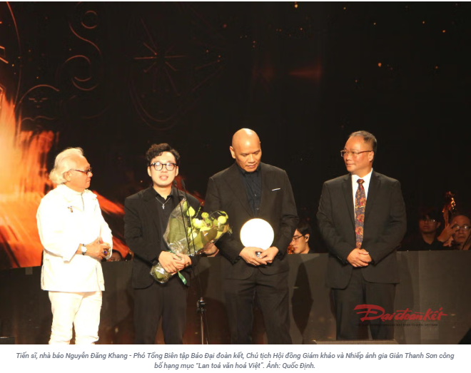 Cũng tại lễ trao giải, Tiến sĩ, nhà báo Nguyễn Đăng Khang - Phó Tổng Biên tập Báo Đại đoàn kết, Chủ tịch Hội đồng Giám khảo và Nhiếp ảnh gia Giản Thanh Sơn đã cùng công bố chiến thắng của ê-kip tác phẩm "Chào Show" ở hạng mục “Lan toả văn hoá Việt”.