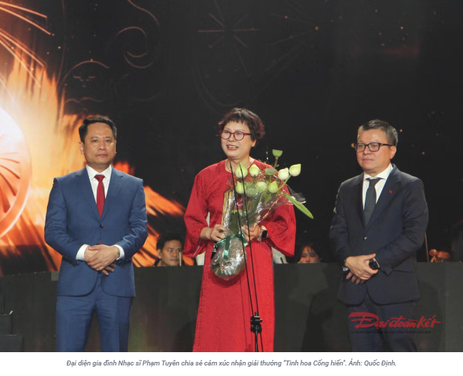 Kết quả, giải thưởng hạng mục "Tinh hoa cống hiến" được trao cho Nhạc sĩ Phạm Tuyên. Nhạc sĩ Phạm Tuyên là một trong những cây đại thụ của nền âm nhạc cách mạng Việt Nam, với gia tài hơn 700 tác phẩm, nổi bật nhất là ca khúc lịch sử "Như có Bác Hồ trong ngày vui đại thắng". Ông thành công rực rỡ ở cả mảng ca khúc cách mạng, ca khúc về Trường Sơn và đặc biệt là các sáng tác thiếu nhi đi cùng năm tháng.