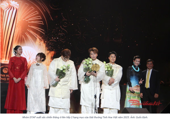 Trao giải cho hạng mục “Nhà sản xuất âm nhạc của năm” đã xướng tên nhóm DTAP đã xuất sắc vượt qua 5 đề cử ở hạng mục này và trở thành "Nhà sản xuất âm nhạc của năm" - Giải thưởng Tinh Hoa Việt năm 2025.