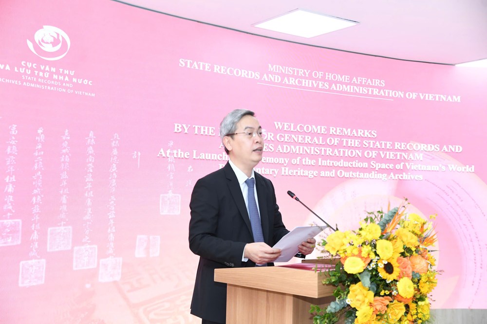 Cục trưởng Cục Văn thư và Lưu trữ nhà nước Đặng Thanh Tùng phát biểu tại Lễ ra mắt "Không gian giới thiệu Di sản tư liệu thế giới của Việt Nam và tài liệu lưu trữ quốc gia tiêu biểu"