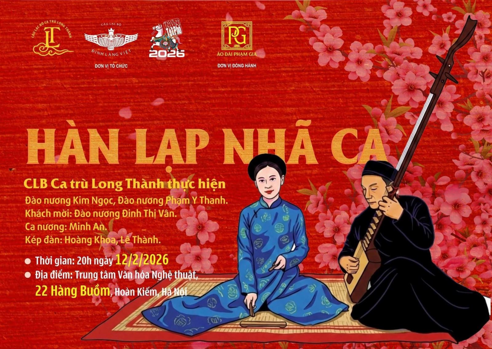 Chương trình diễn ra vào 20h00 ngày 12/2/2026 (25 tháng Chạp năm Ất Tỵ) tại Trung tâm Văn hóa Nghệ thuật, 22 Hàng Buồm, Hoàn Kiếm, Hà Nội./.