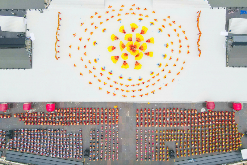 Màn trống hội "Bình minh kỷ nguyên mới" có hàng nghìn trống nhỏ và trống đại.
