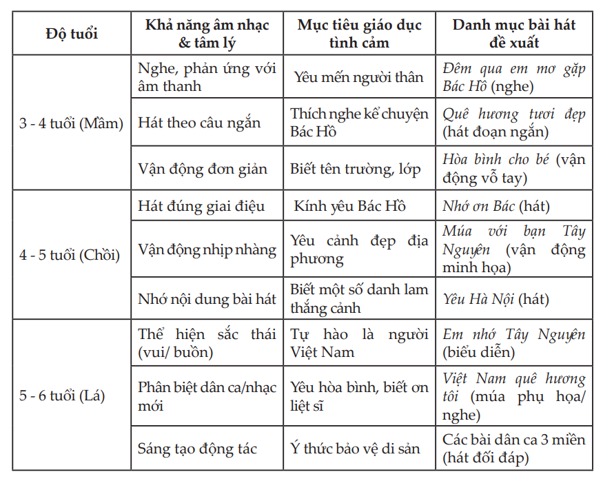 Tổng hợp hệ thống bài hát giáo dục tình yêu quê hương theo độ tuổi.